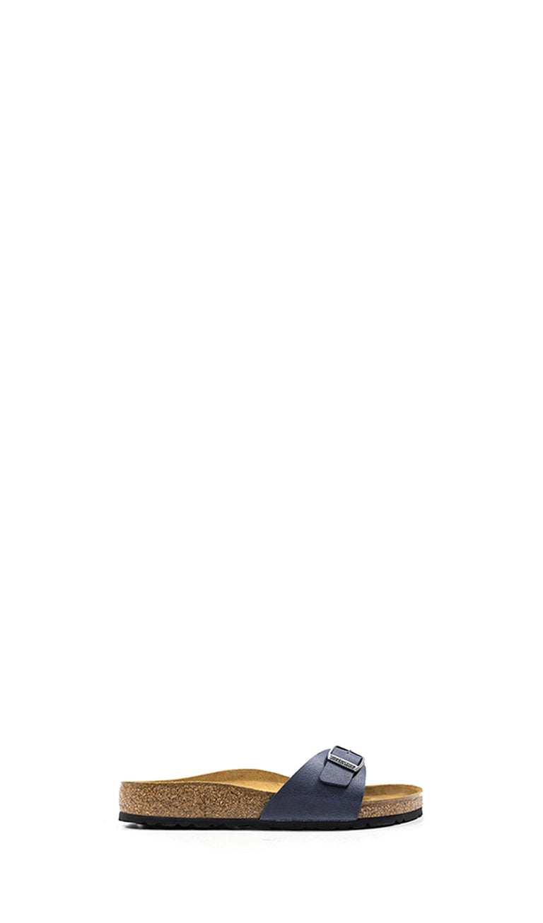 BIRKENSTOCK MADRID Ciabatta donna blu. Lanciata mezzo secolo fa sul mercato come “pianella da ginnastica”, questo modello a cinturino unico dalle linee essenziali è diventato ora una vera icona di moda. La tomaia è in materiale sintetico Birko-Flor e presenta un raffinato effetto Nabuk. Grazie alla speciale lavorazione, la tomaia può essere facilmente scambiata per vera pella sia per colore che per texture.