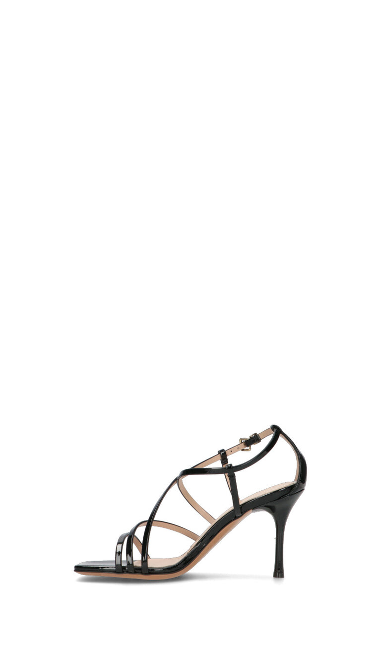 ALBANO Sandalo donna nero in materiale sintetico effetto vernice. Caratterizzato da un design sofisticato e un raffinato lucido, questo modello è pensato per aggiungere un tocco di classe a ogni look.